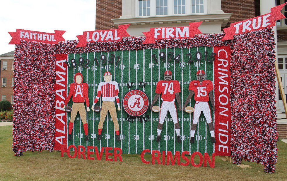 At the University of Alabama Homecoming week is full of fun activities all leading up to the big Homecoming football game, and the return of former UA students. However for the Greek organizations on campus the week leading up to Homecoming is full of pomping, in order to create lawn decorations that represent the homecoming theme.