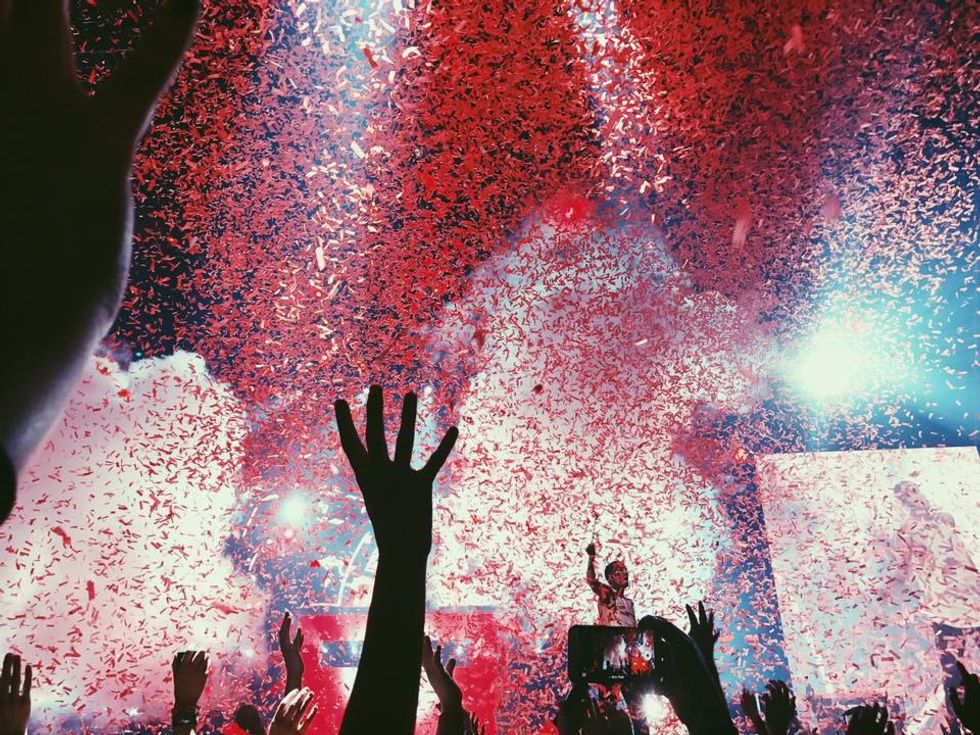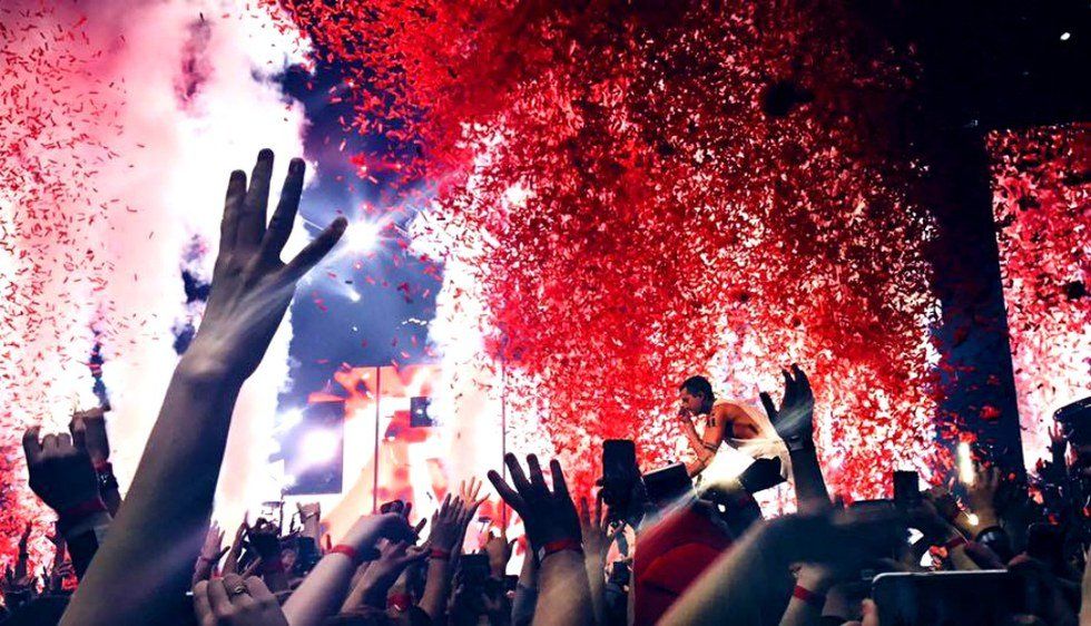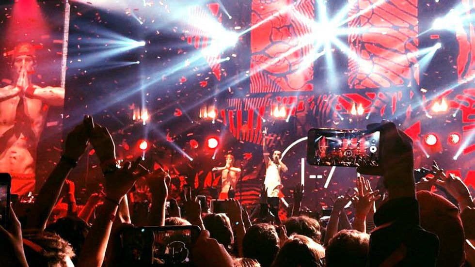 Both members of Twenty One Pilots, Josh (right) and Tyler Joseph (left), performed a few songs on platforms held up by the general admission fans.