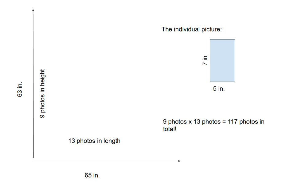 Pick your place: Decide where you want your work of art to go. A small wall, a big wall, your ceiling — the flat surface options are endless! Whatever location you select, measure out the length and width of our space. Then determine what the size of each individual photo will be. This way, you can calculate how many pictures you'll need. I'll insert the math I did with my three brain cells to figure that ish out. Don't start the hysterics though, if I can do it, you sure as hell can.