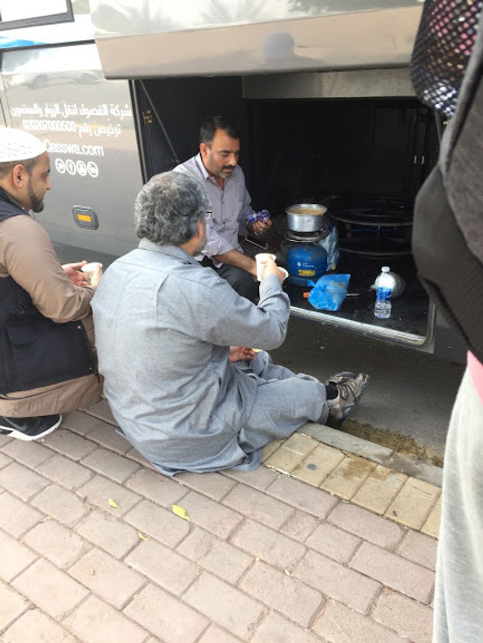 The people who worked in Madinah and Makkah were so kind. Some of them really enjoyed telling us about the city and making our experience more relaxing. For example, in the picture above, our bus driver decided to make us hot chai while we prayed in Masjid Quba. By the time we came back we all sat in the bus and bonded over some great chai.
