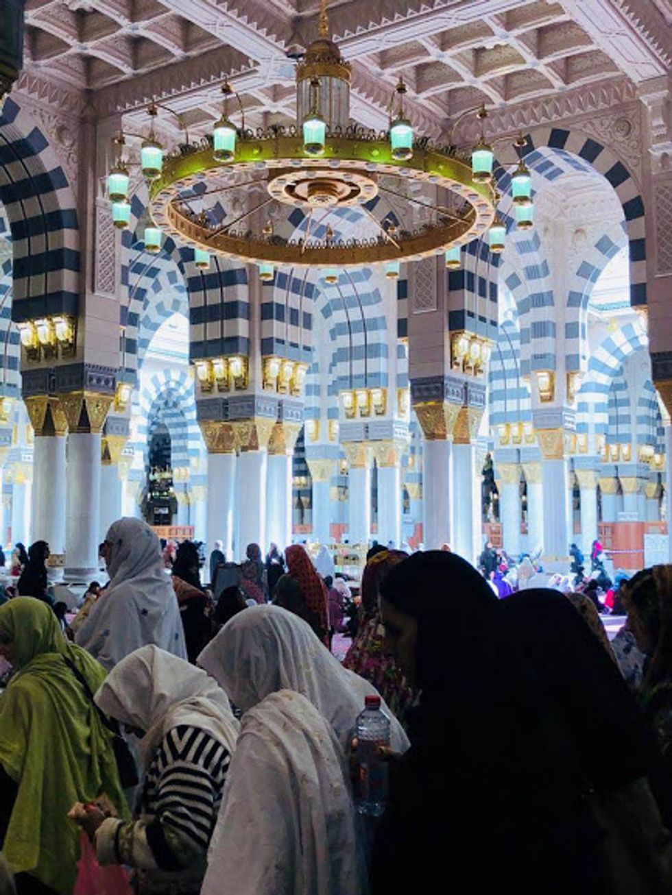 I didn't get to get a great picture but the green carpet is where the rawdah or the piece of Jannah starts. It's not usually this calm but I went with the wheelchairs so it wasn't as rushed. Overall it was amazing!