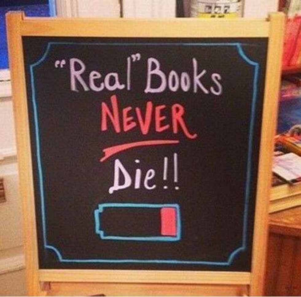 Using E-books you save up space, you don't have to make space in your home for books, but at the same time, I love walking into my room and seeing my bookshelf filled with all of the books that I have lost myself in.