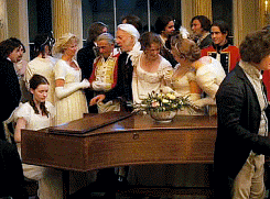 The piano once used to be the main form of entertainment until the mid-1900s, as it was something everyone could enjoy. The piano is such a versatile instrument - it can be used in all types of settings of music. People would listen to pianists anywhere ranging from a debutante ball to a saloon parlor. This is shown in various movies, such as below in Pride & Prejudice, but seldom do you see a piano today as the life of the party.