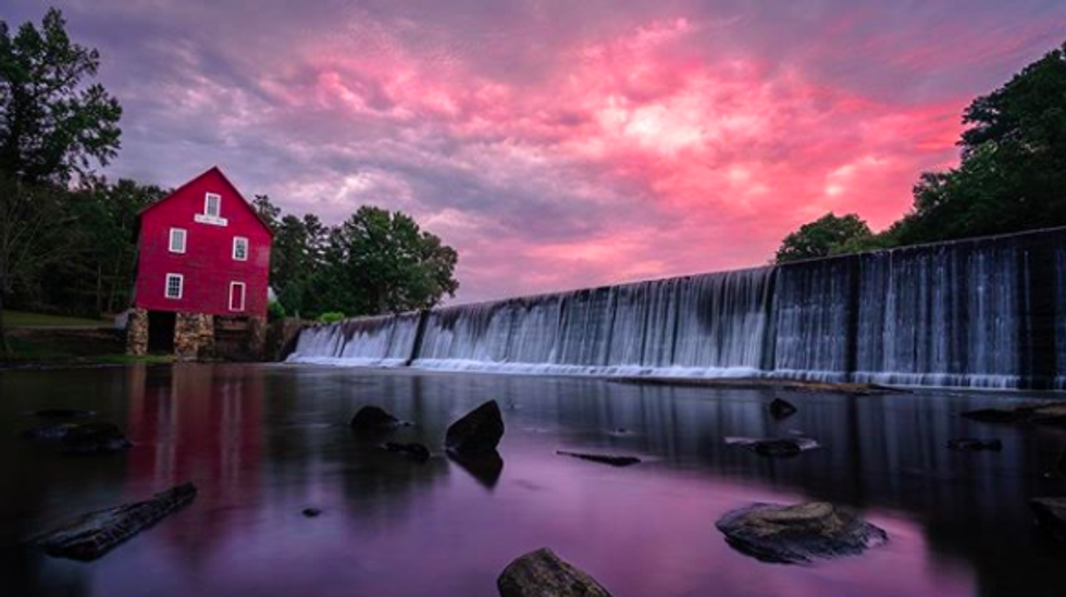 This mill is located right on Whitewater Creek where it was originally used by the community for a cotton gin and more. The beautiful red building is perfect against the soft blue water.