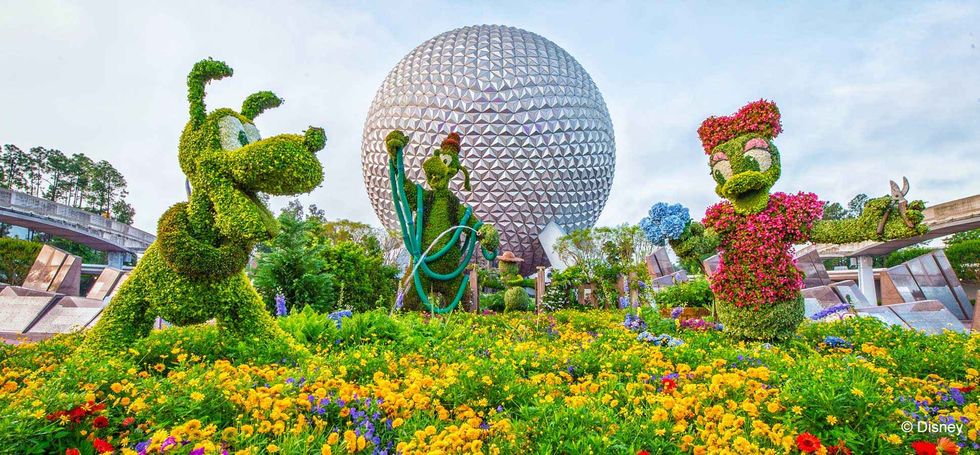 The flowers just in front of Spaceship Earth – Epcot