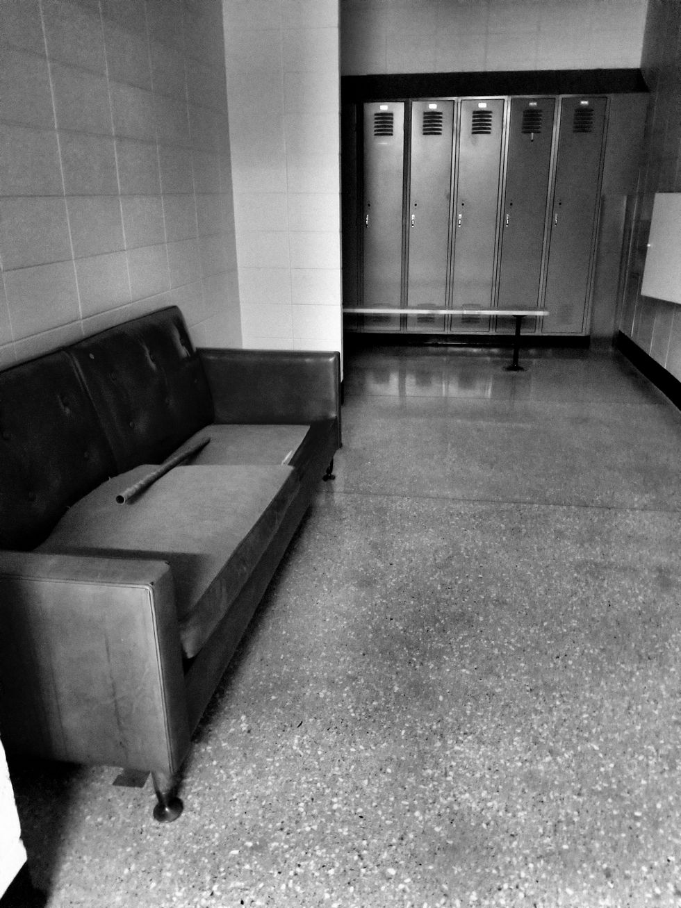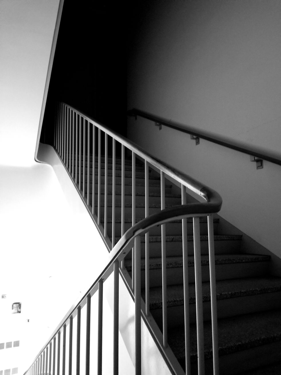 Many stairways were dark. The power was only on in certain places in the building. This stairwell in particular was pitch black, whereas others had natural light to illuminate the steps. The halls were still and eerily quiet.