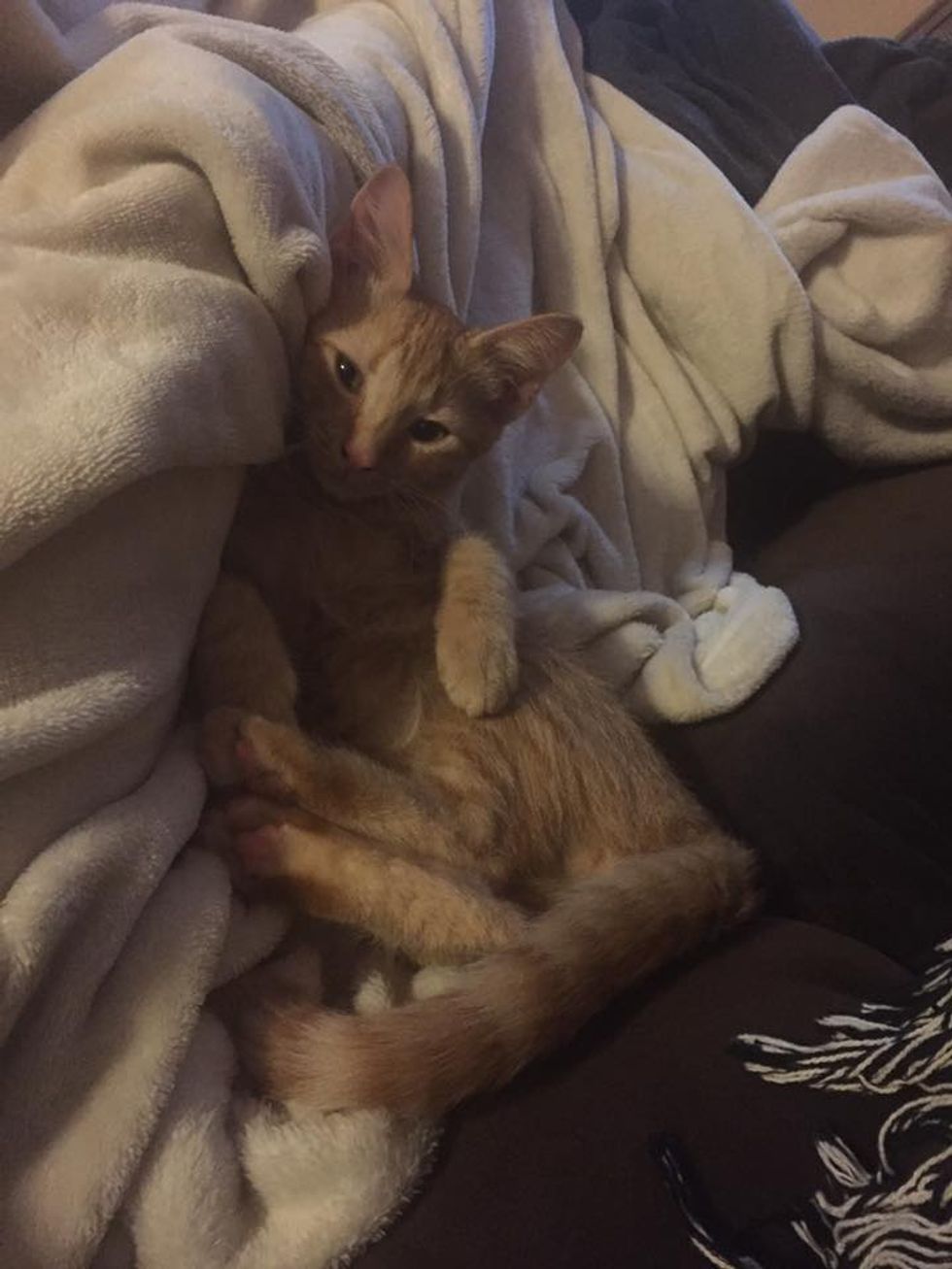 He loves being tucked in, if you couldn't tell