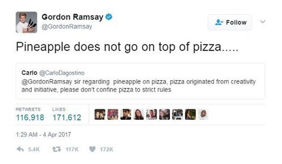 Luckily for those who are against pizza, they have Gordon Ramsay.