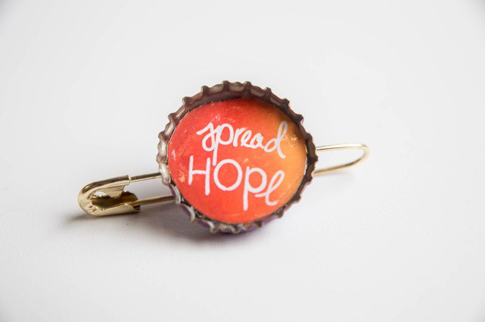 In the fall of 2016, I started making pins with bottle caps, safety pins, glue and mod podge, and designs I had created and printed on cardstock. I thought these pins would create a fun way to show love through random acts of kindness. After watching the movie The Letter Writer, random acts of kindness became a big part of how I wanted to live my life. These pins were just a small yet unique way I could do just that.
