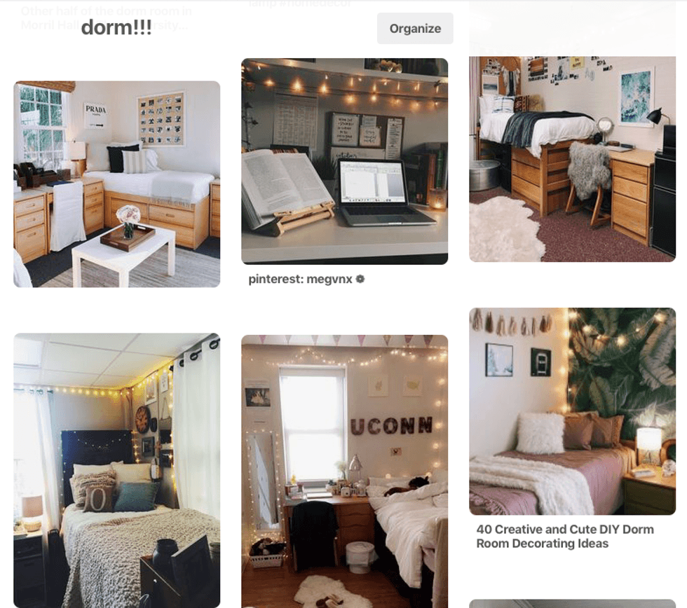 Alright, but are you even a college student if you don't have a board with about 450 different dorm rooms that are most likely completely different layouts than yours, but, hey — those lights are cute!