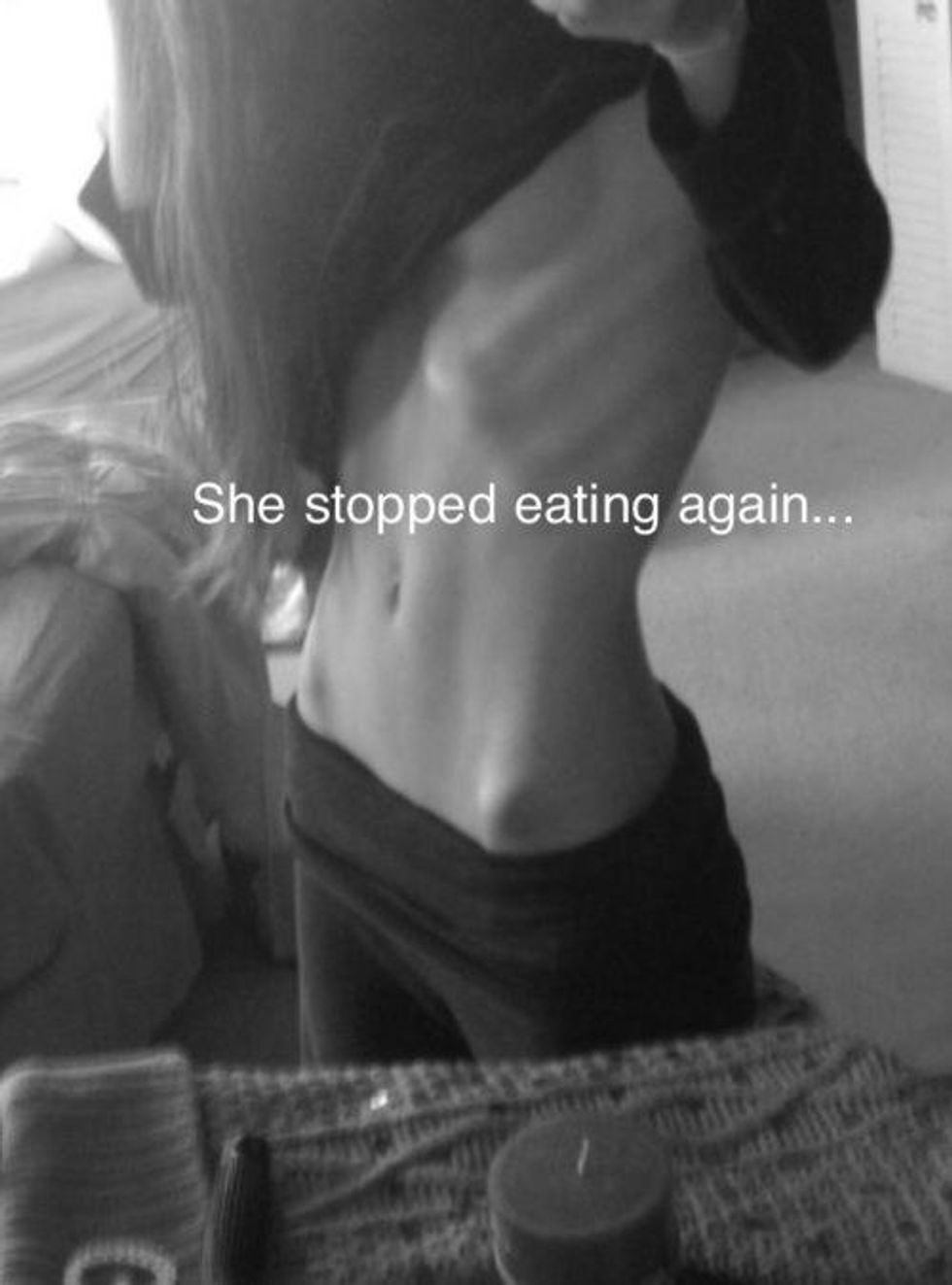 So many pins feature girls with sharp hipbones, defined collarbones, protruding ribs and a stomach that's not only flat but dramatically concave. The following picture has been pinned on 2.2 thousand boards. A few of the various captions people used were “Relapsing is hell” and “Time to stop eating again:”