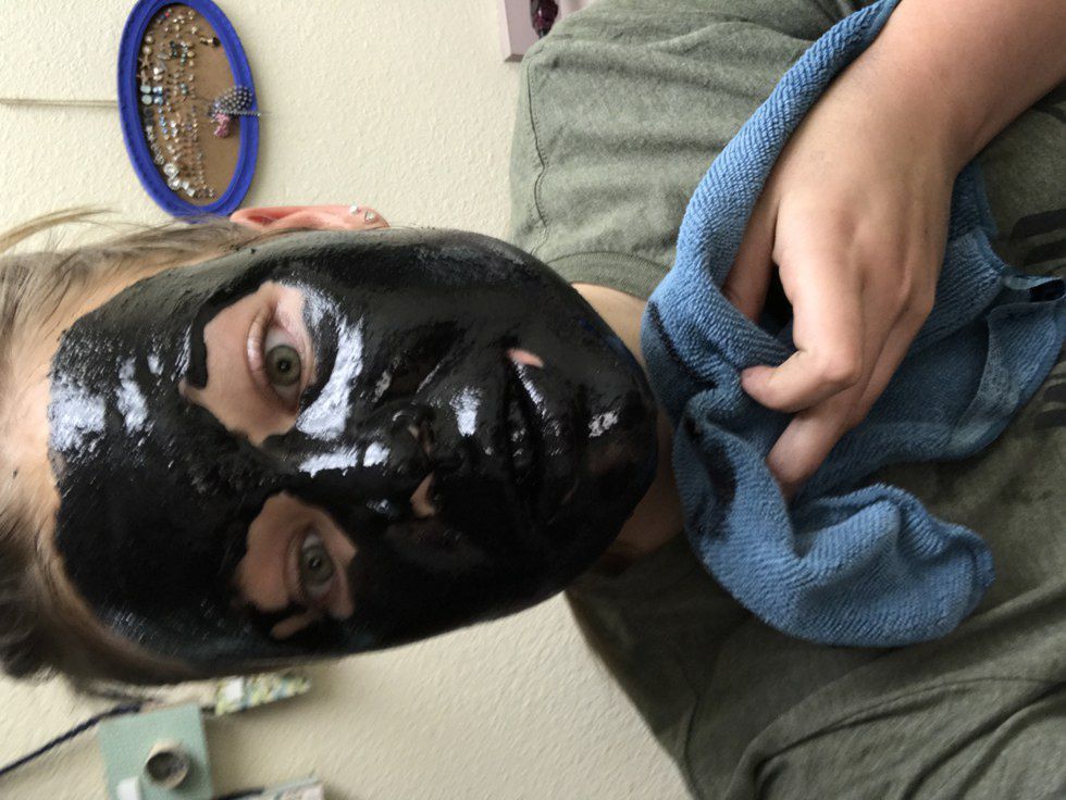 I grabbed my knife made out of bamboo and started mixing the activated charcoal and bentonite clay together. My game plan was to add a tiny bit of olive oil, and then add water to the rest. As I was pouring in the olive oil I was mesmerized my how smooth it was making the mix. I mixed it until it formed the most satisfyingly smooth slime. I decided that right there, I had just made the most significant face mask. I used my little bamboo knife to smooth it all over my face. One word that was going through my mind: HEAVEN. The soothing, cool slim ran beaufifully all over my face. Then I remembered how activated charcoal is supposed to help whiten teeth. It was dripping in my mouth so I went for it. The concoction was soon in my mouth covering my teeth, making it hard to talk.