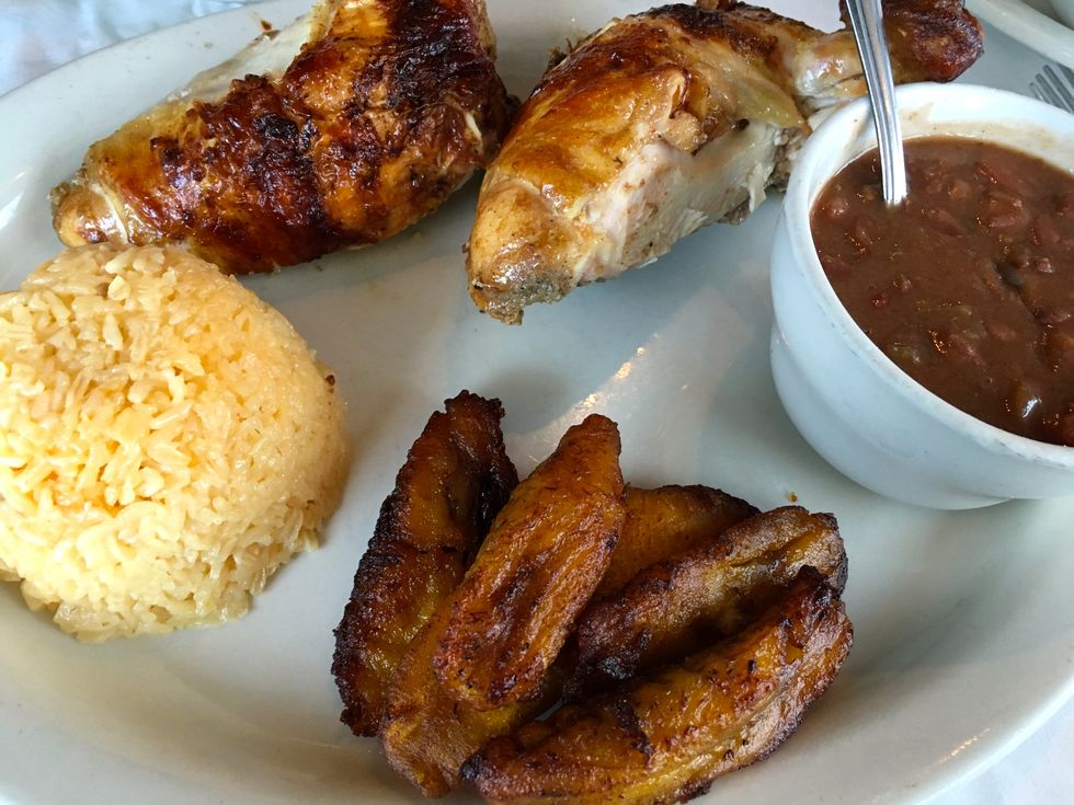 Ah. The gem of the restaurant: Pio Pio's infamous rotisserie chicken! I love their chicken so much I usually order half a chicken just so I can have leftovers--which I totally recommend you doing so as well. 😋 Along with the spectacularly roasted chicken literally dripping with flavor, you get a perfect little yellow rice sandcastle (like seriously, look at how perfect the rice is LOL), black beans, and your choice of green plantains (non-sweet), ripe plantains (sweet), or Cassava (yuca root). I always get the sweet plantains which are crispy on the outside but soft on the inside. YUM.