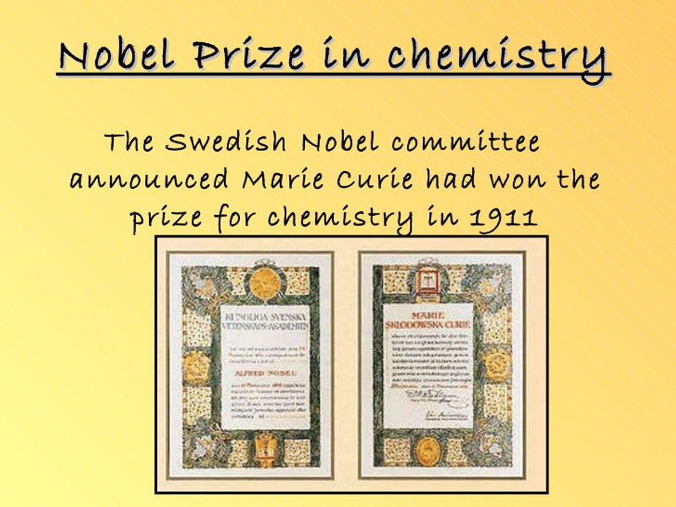 Curie was the first woman to win a Nobel Prize, the first person and only woman to win a Nobel Prize in two different sciences. She added two Nobel Prizes to the Curie Nobel Prize legacy of 5 Nobel Prizes.