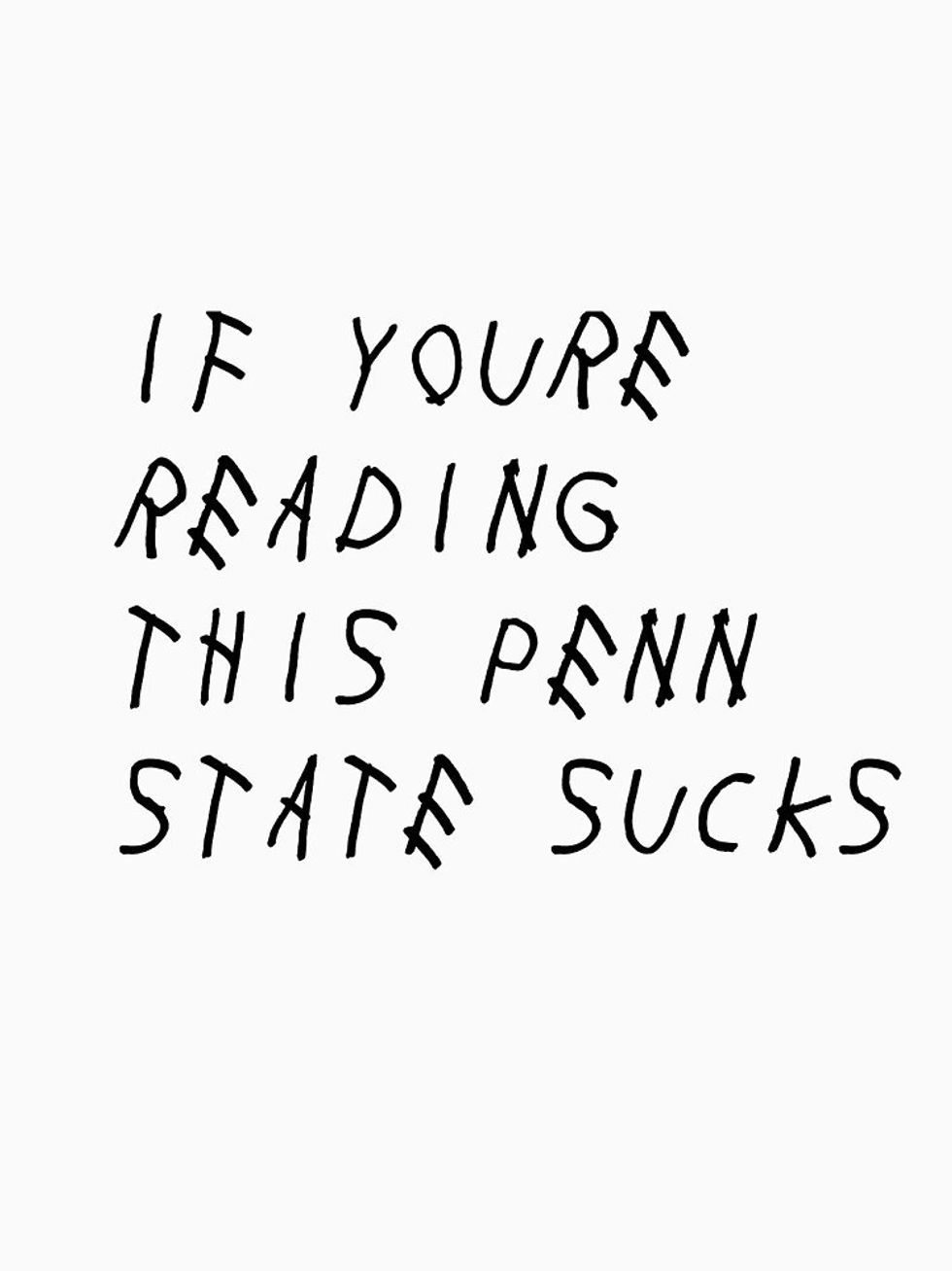 Just leave. I know our campus is more interesting than yours, but you aren’t welcomed here this week or any week after. If you daring Penn Staters decide to not take heed of my advice, don’t wear your logo because you’re just asking for trouble. Just a word to the wise. You don't even go here!