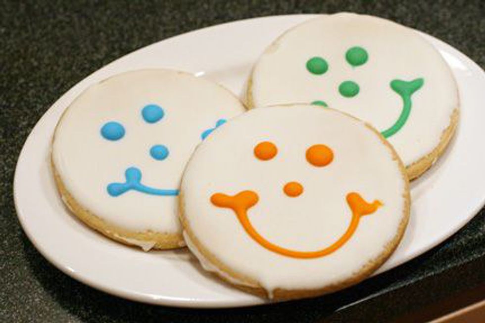 Eat n Park's the place for smiles, literally. From the smiles on the pancakes to the smiles on the waitress's face to the smile I get when Oreo is the pie of the month, there are smiles everywhere in this place. But no smile is bigger than the smiley cookie's smile (these cookies are huge and delicious and feed my nostalgic sweet tooth).
