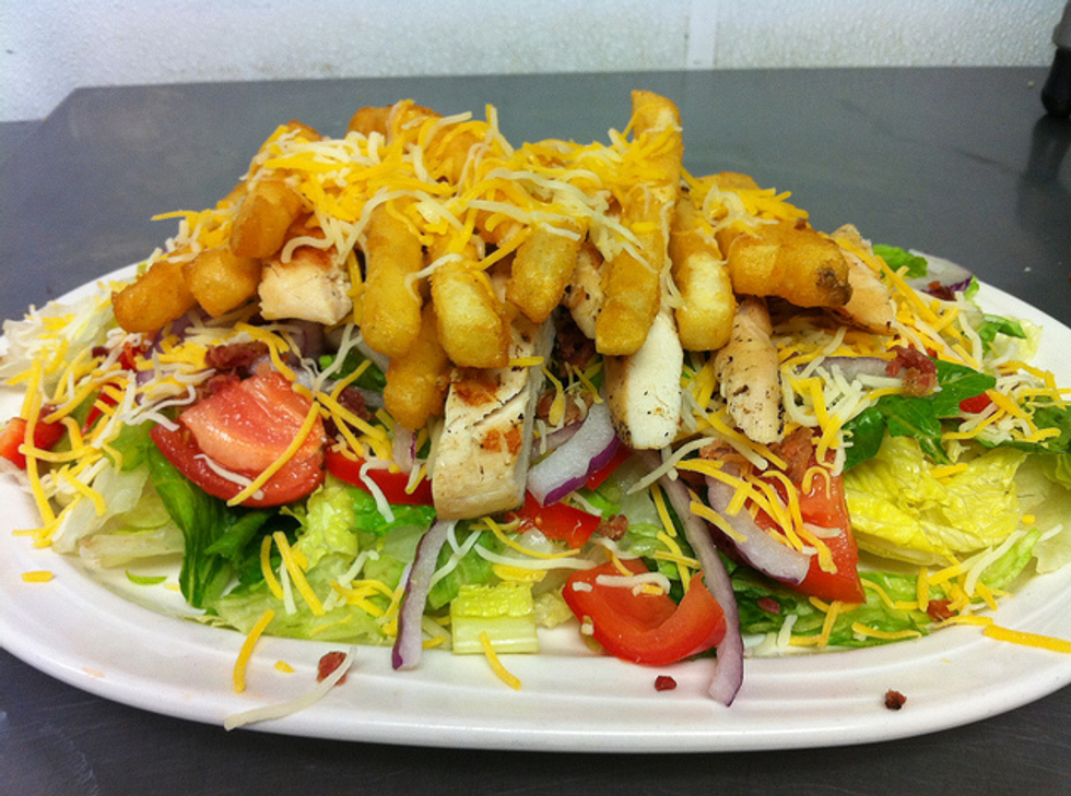 Speakin' of fries, Pittsburgh people put french fries on literally everything. Sandwiches, chilli, eggs, even salads. Yup, if you go to Pittsburgh and order a salad because you're trying to be healthy, make sure you specify "no fries," because fries is a as standard as lettuce. Even if it's not in the salad's description, you can bet it comes with fries on top. Even my high school cafeteria put fries on the salad, despite Michelle Obama's devious ways.