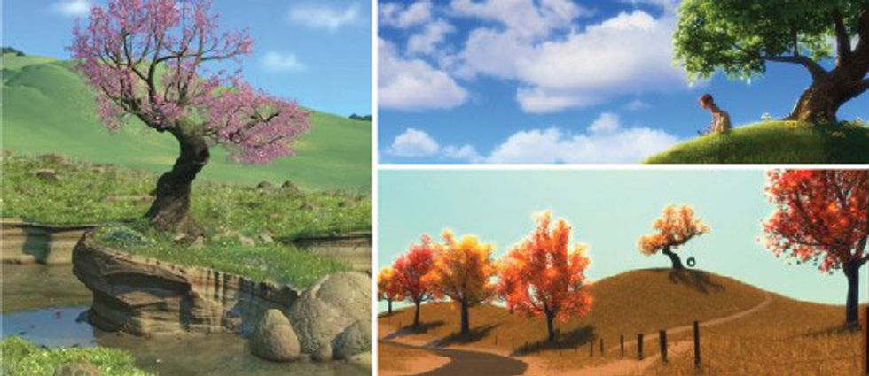 What’s so fascinating about this postcard is that it is from a person named Emma Jean. Pete Doctor, who worked on the stories of "Up," "Monster's Inc," and "Inside Out" actually said in an interview that this Emma Jean is from a relationship Carl had before he married Ellie. Ellie was originally jealous of her, but they eventually became friends. Not only does this put an entirely new dimension on the opening to "Up," but it also begs the question of why exact ally Andy has this postcard in his room. It seems to be some sort of keepsake, but that would imply that Andy knew either the Fredricksens, or that he knew Emma Jean. In "Toy Story 2," it’s stated that Jessie’s former owner’s name is Emily, so if Andy’s mom was Jessie’s owner, her name would be Emily. It’s possible that Emma is short for Emily, so Andy’s mom is this “Emma Jean.” This is backed up by a tree. This tree.