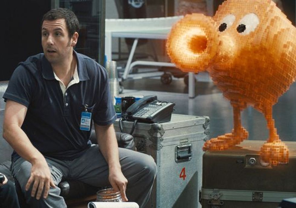 "Pixels" is about a low-life former gaming champion called to duty to defend the world against an alien invasion, only instead of aliens, they’ve sent copies of popular video games which can only be destroyed by playing the game each battle resembles.