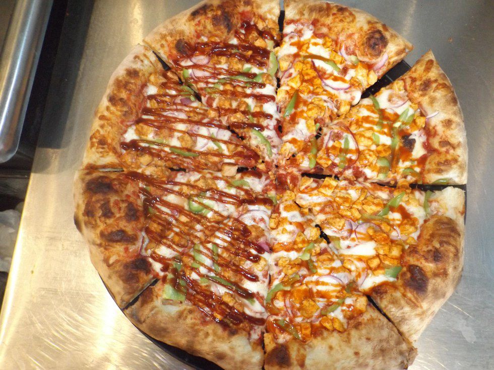 Here is an example of 2 pizzas in 1. To the left you have the BBQ Chicken Pizza, and to the right is the Blazing Chicken Pizza.