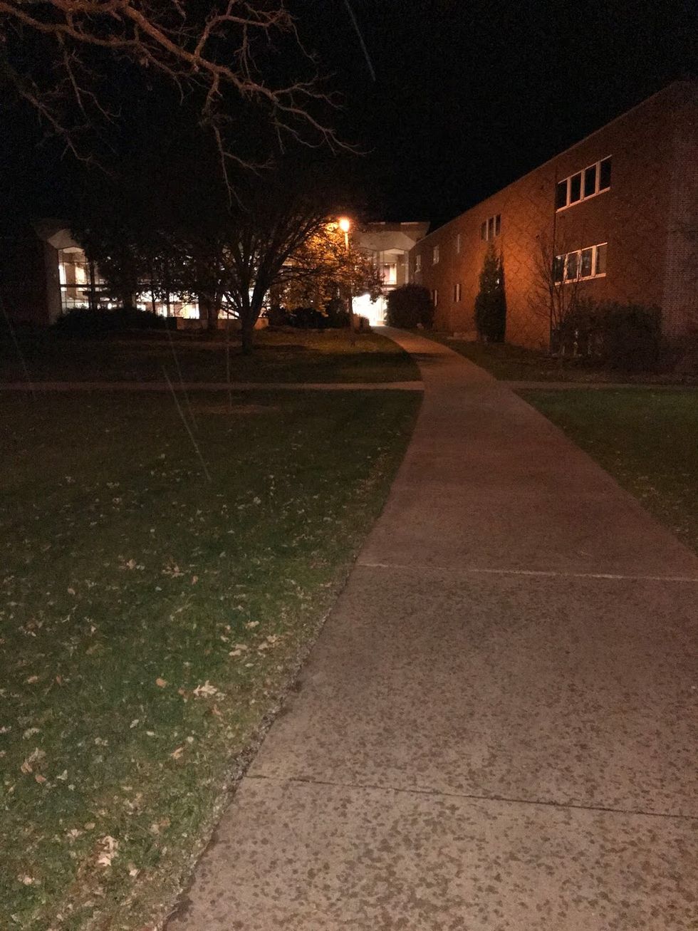 This is also the place on the sidewalk where, less than 6 months later, I walked through listening to my favorite song back from the library after a good session of homework.