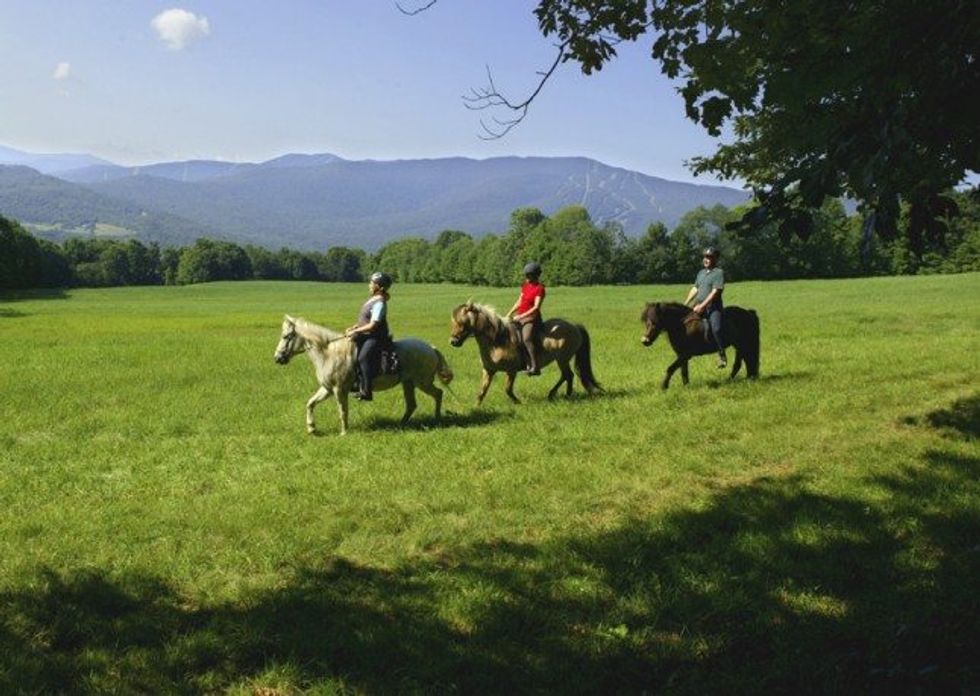 Riding the Icelandic horses through the countryside of Vermont's Green Mountains. The magnificent views of the ski area, riding through the forest, and neighboring farmlands. The journey continues via "Enchanted Way," a wonderful terrain used by cross-country skiers in winter.