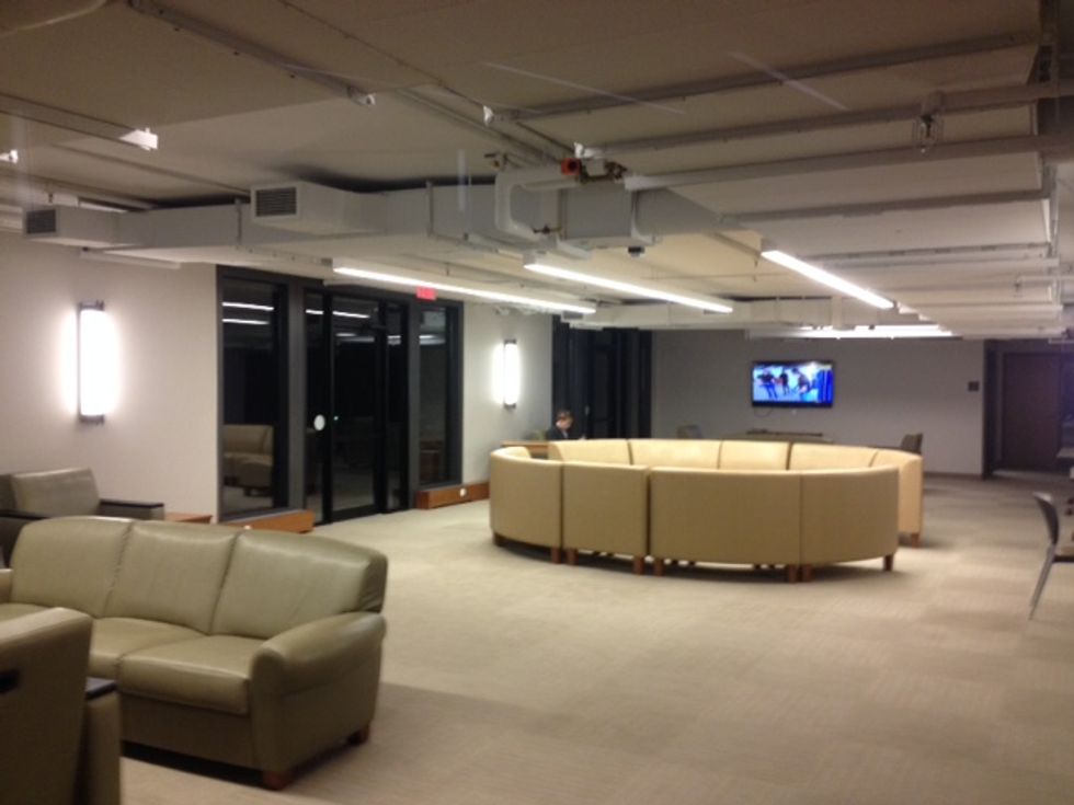 Did you know that on the ground floor of the student center near Champ there’s a lounge especially for us? Downstairs, you’ll find everything a commuter would want: two big screen TVs and an abundance of couches to rest on. Normally, there are not too many people down there, but if it’s pretty packed, you can walk right outside and sit on the terrace overlooking the green field near Bryne House.