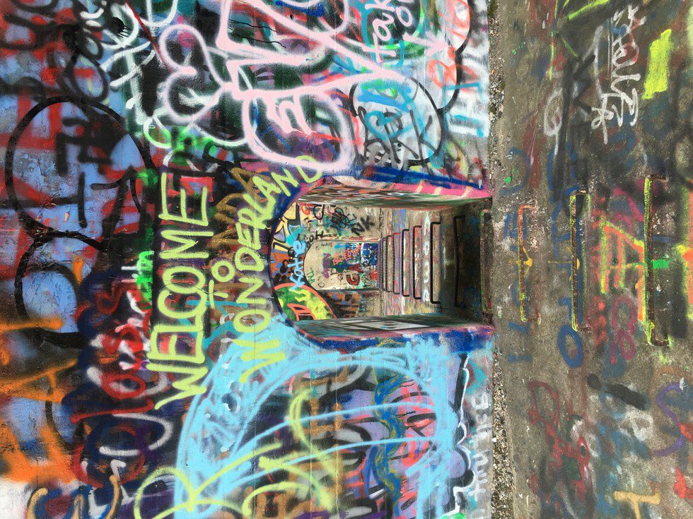 This place is definitely a form of art; from the graffiti to the actually shape of it this place is really cool. You do need a good sneaker to be able to actually get to it though. You hike up a rather large incline to get to the top and then have to fit through a tiny hole to be able to get down. You might end up getting a little muddy but I think the view is definitely worth it.