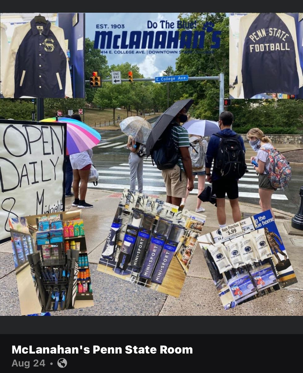 This classic Penn State store located across from South Halls has literally everything you could think of from merchandise to stickers to shaving cream. McLanahan's is one of the most popular places to get Penn State stuff from because while they have the cute Penn State merchandise that is a little more expensive and tailgate ready, they also have a wall of cheaper shirts and sweatshirts that can be cut to make cute Penn State tailgate clothes. If you are looking for affordable Penn State shirts that you can easily make your own please go to McLanahan's you won't regret it!