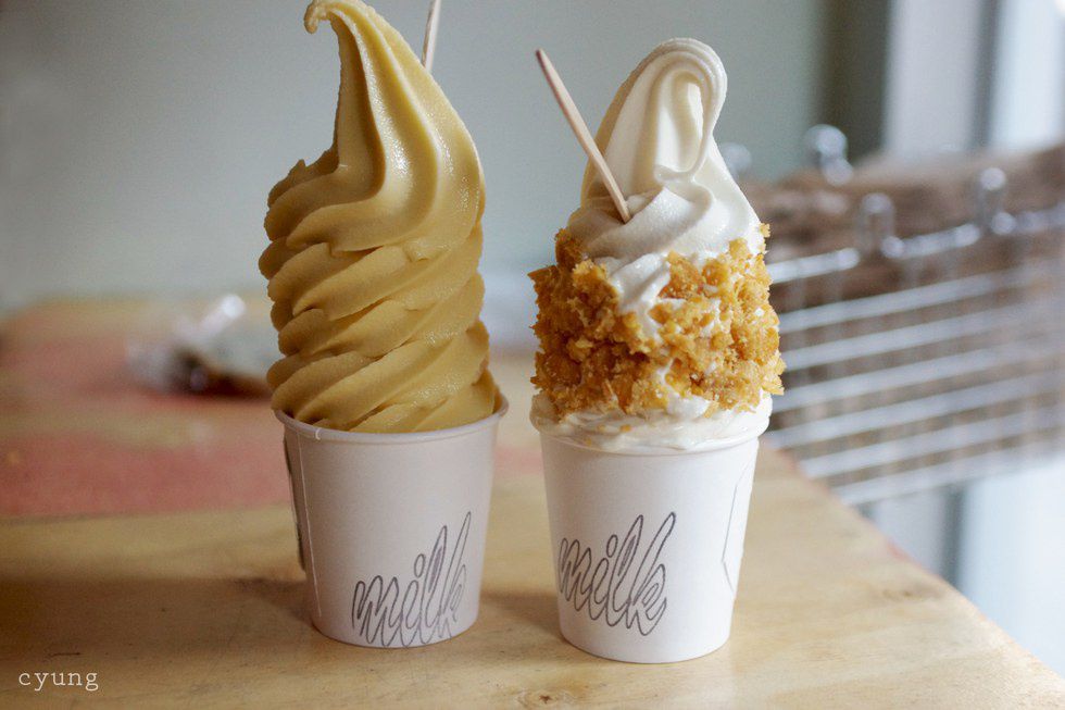 Soft serve cereal milk ice cream with cereal on top = Delicious and different. A must try if you want the tastiest ice cream!