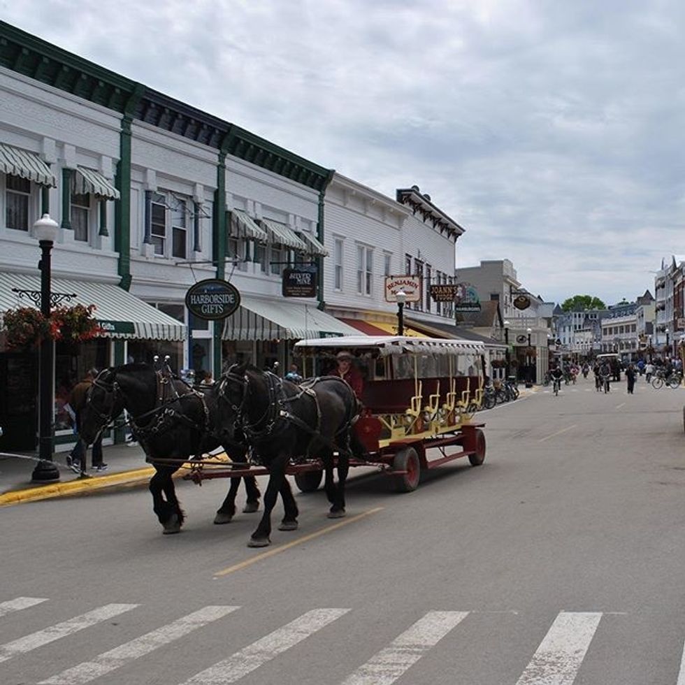 Mackinac (pronounced "Mack-in-naw") Island sits in Michigan's Lake Huron, between the upper and lower peninsulas. Mackinac Island has absolutely no cars or chain hotels, standing as the perfect out-of-time vacation resort.