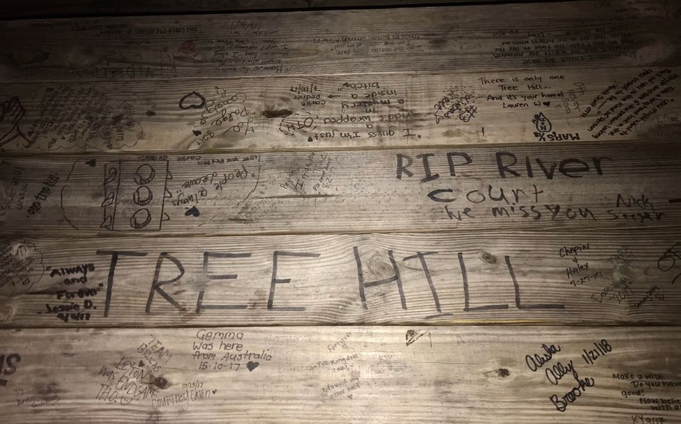 Although the Rivercourt was the only aspect of the show that was taken down when it ended, the park that it was in is still there, and we still went over to see where so many important scenes had occurred. In the place of the Rivercourt was a small area with picnic benches that were covered in messages from fans, and even some notes from the cast, too. These benches were the coolest part because it showed how much of an impact OTH left on so many people. RIP Rivercourt, we miss you.