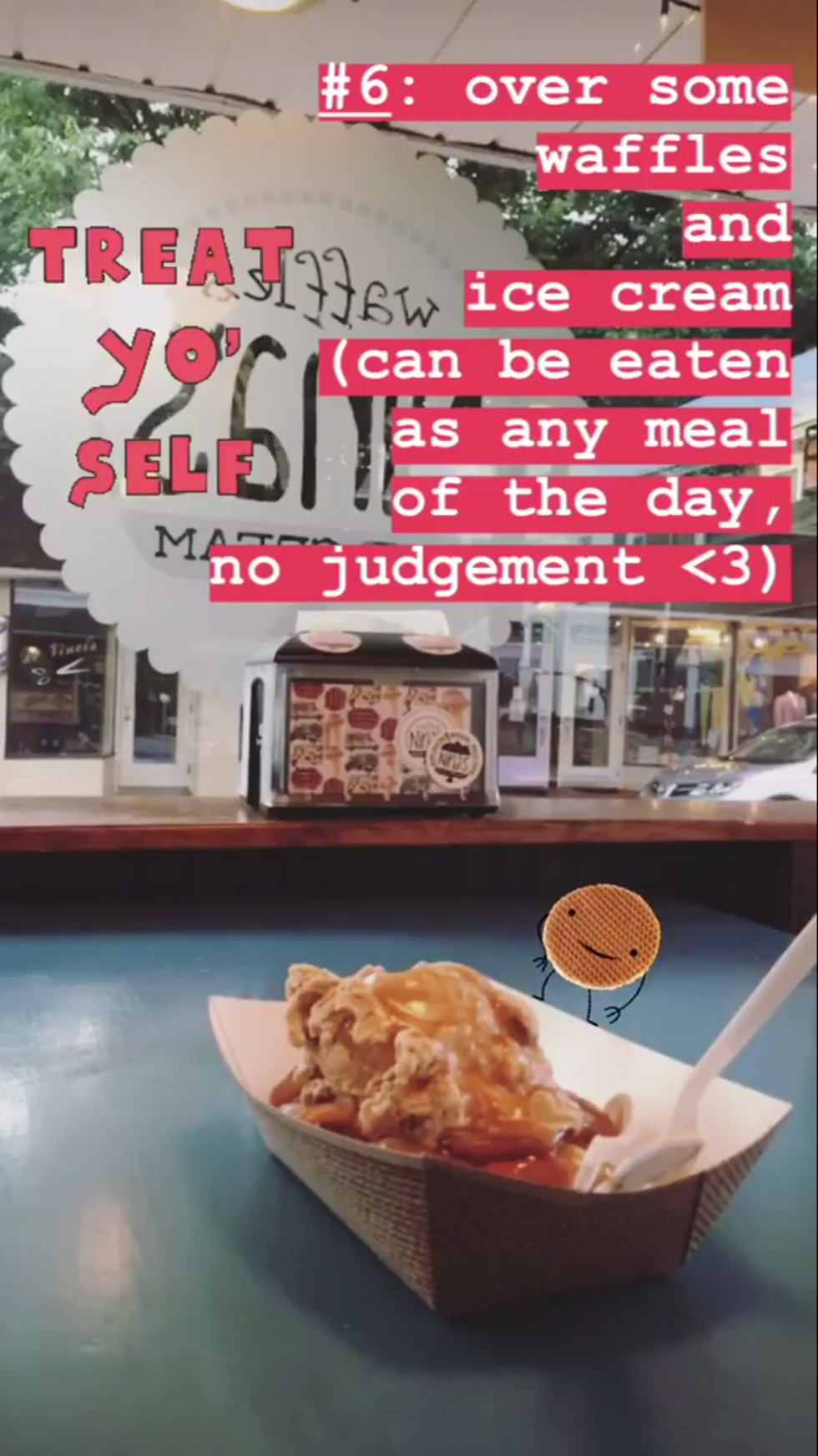 Have some classic waffles and ice cream!!! Any nearby diner has this and just the thought of it brings back nostalgic times when you were a little kid without a care in the world.