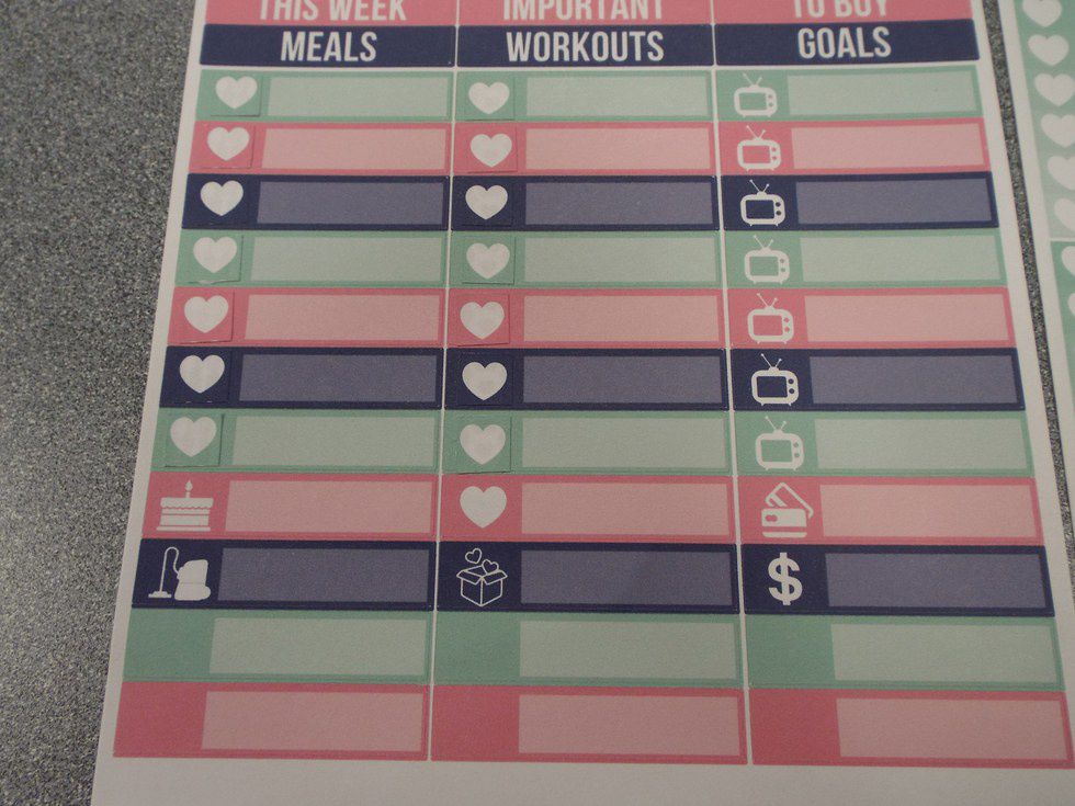 I used an Exacto knife to cut the heart checklists so I could use those hearts to cover up the symbols on some of the Little Things so I could use them to mark my classes for the week.
