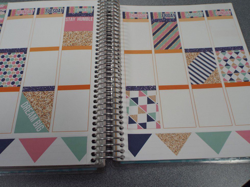 I added half boxes for work, some events, my sister's birthday, and my dog's birthday. Then I used some appointment boxes for meetings and other events. I threw in some washi and icons, and throughout the week I had to add quite a few other things, so I will just show you my finished spread!