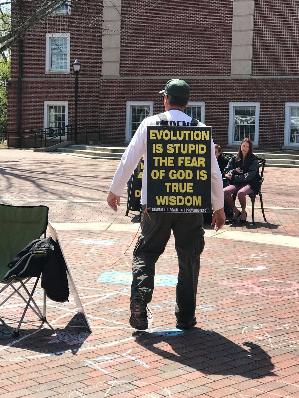 Students can see negativity from a mile away, and even those with this man's same belief in God stood and debated with him. Those that debated from a Christian standpoint handled it in a calm fashion while he yelled at them; calling them all hypocrites. I approached one student that I met through mutual friends.