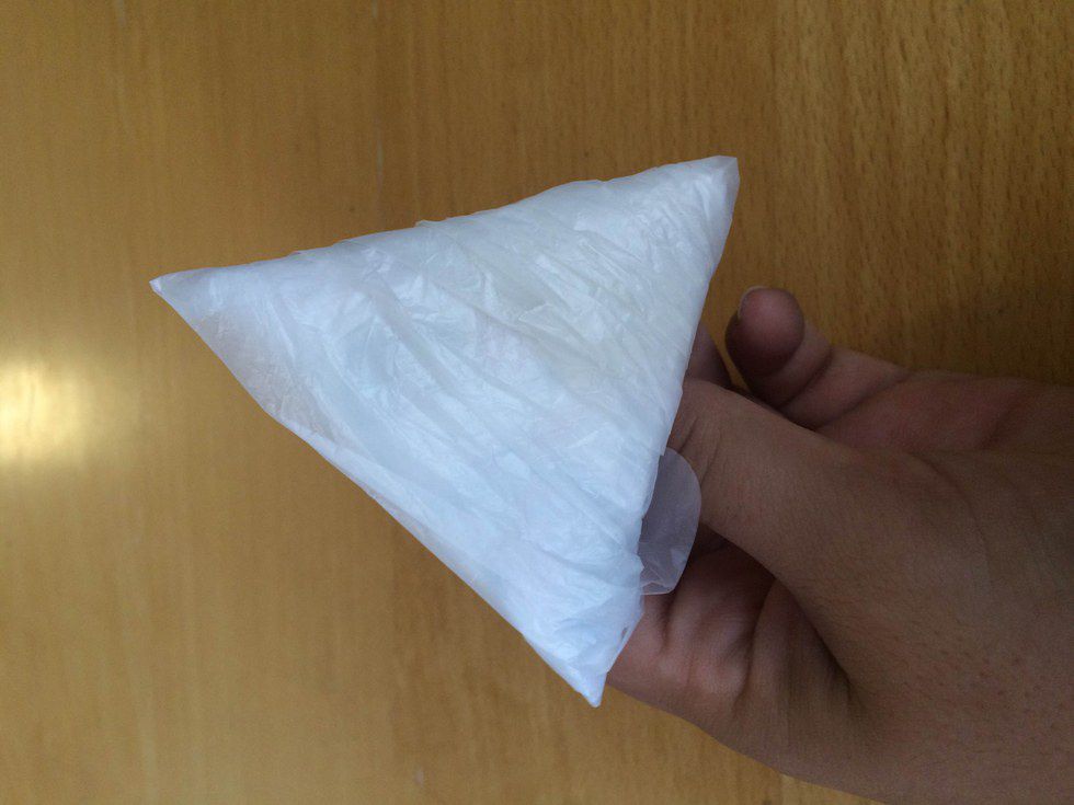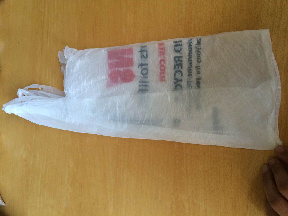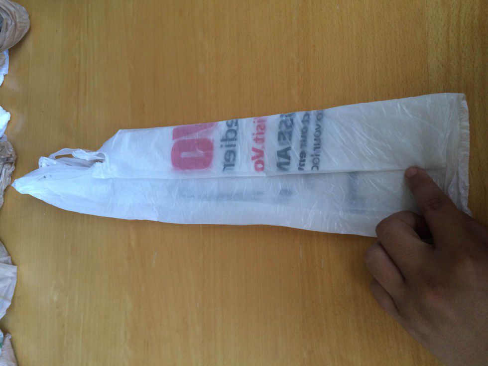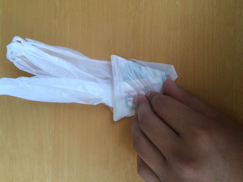 Like most people, my family and I are guilty of hoarding plastic bags! Our way of saving plastic bags is cramming a whole bunch of smaller plastic bags into a larger bag. The result is often messy and the bags often seem to be spilling out of the larger bag! So, my mom got this creative idea to store the bags in a way that reduces clutter and saves space! The end result will be a plastic bag reduced to small triangle! I hope this idea help some of you so that we can continue to save plastic bags!