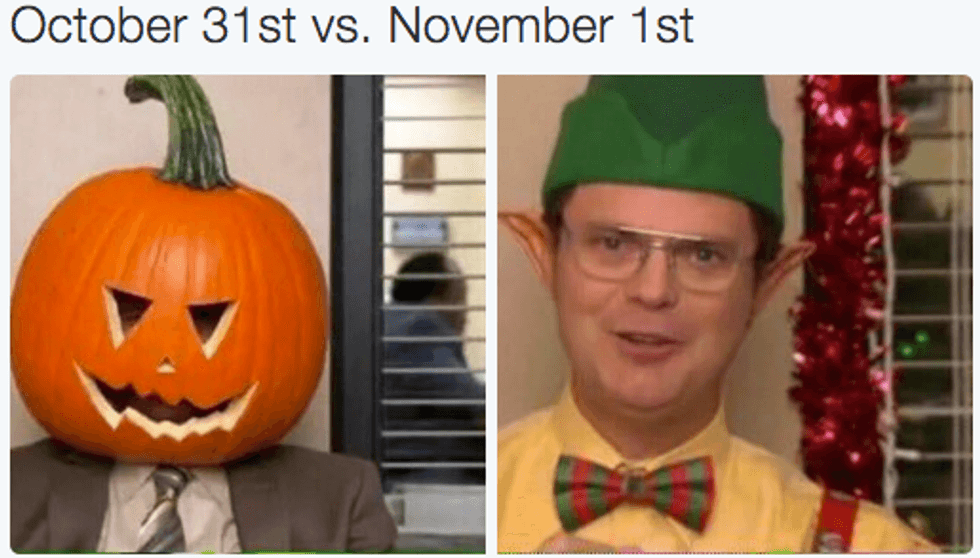 Halloween is over don't you dare tell me I can't play Christmas music.
