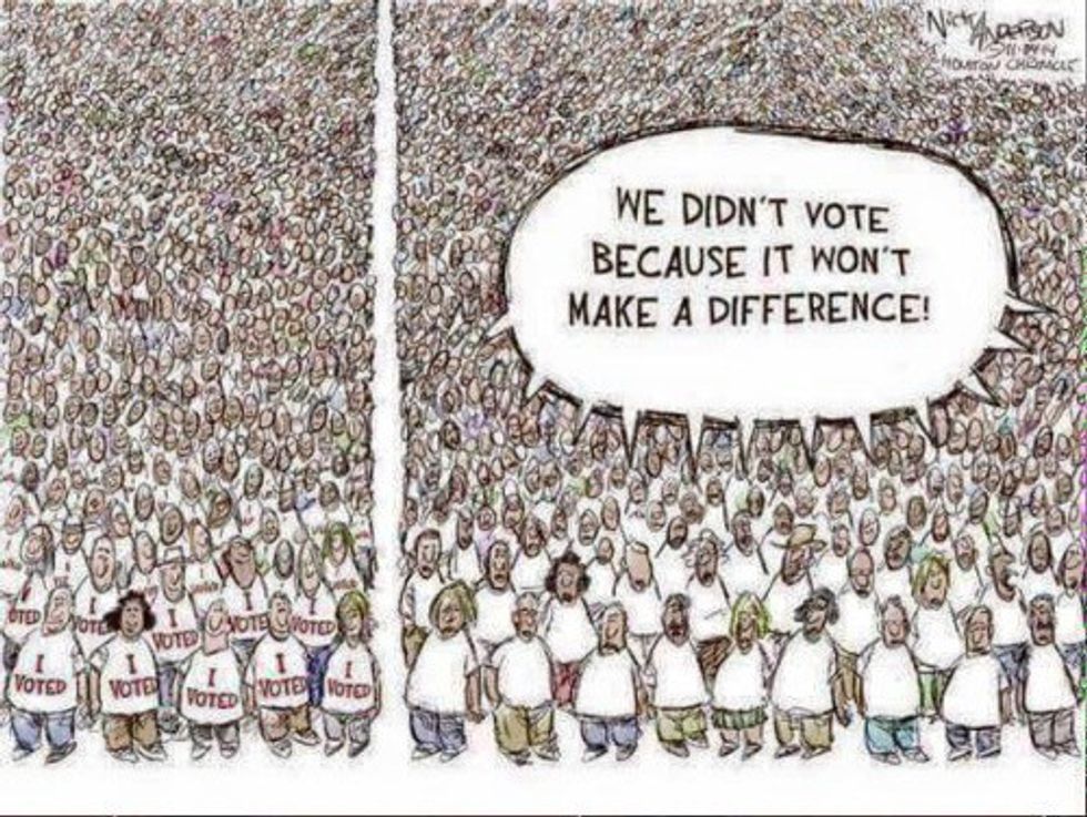 I know it's cliché to say that one person can make a difference, but if enough people start thinking that their vote does count, then collectively, yes, your vote will make an impact.