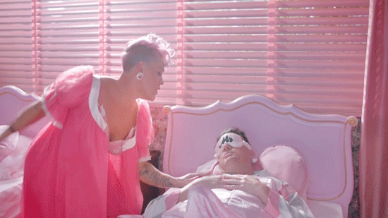 Well. It’s certainly a P!nk song. We can already see a glimpse of what this song is most likely about: a volatile couple. The interesting thing though is listening to the lyrics, while watching the video. The pop singer wakes up in a beautiful pink room and pretty much glides over to Channing Tatum, who is asleep peacefully in a matching single bed.
