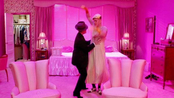The next scene, we see the couple dancing again, but this time Channing is still wearing his yellow dress, and P!nk is rocking a suit and tie with a matching fedora.