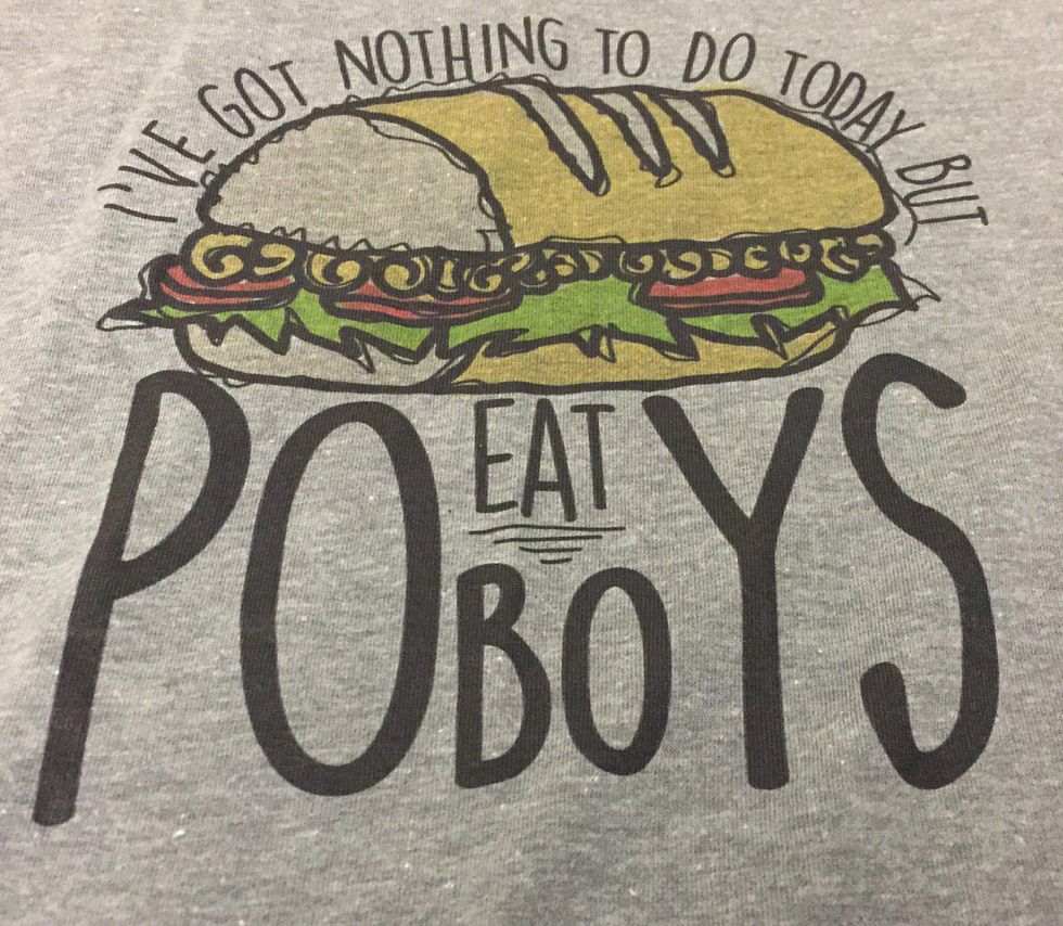 The festival runs from 10am to 8pm, meaning you could totally make it a multi-meal outing. Arrive early, stay late, and pace yourself. Between po-boys, you can kill some time by enjoying live music from 11 different bands on three different stages, shopping around the many cool stores on Oak Street, or checking out the Where Y'Art Market, which will feature unique, handmade goods from more than 20 local artists. (Don't leave without a commemorative festival shirt! I got this one last year to sum up my priorities.) There will also be football viewing zones with full bars and plenty of seating to catch the Saints game.