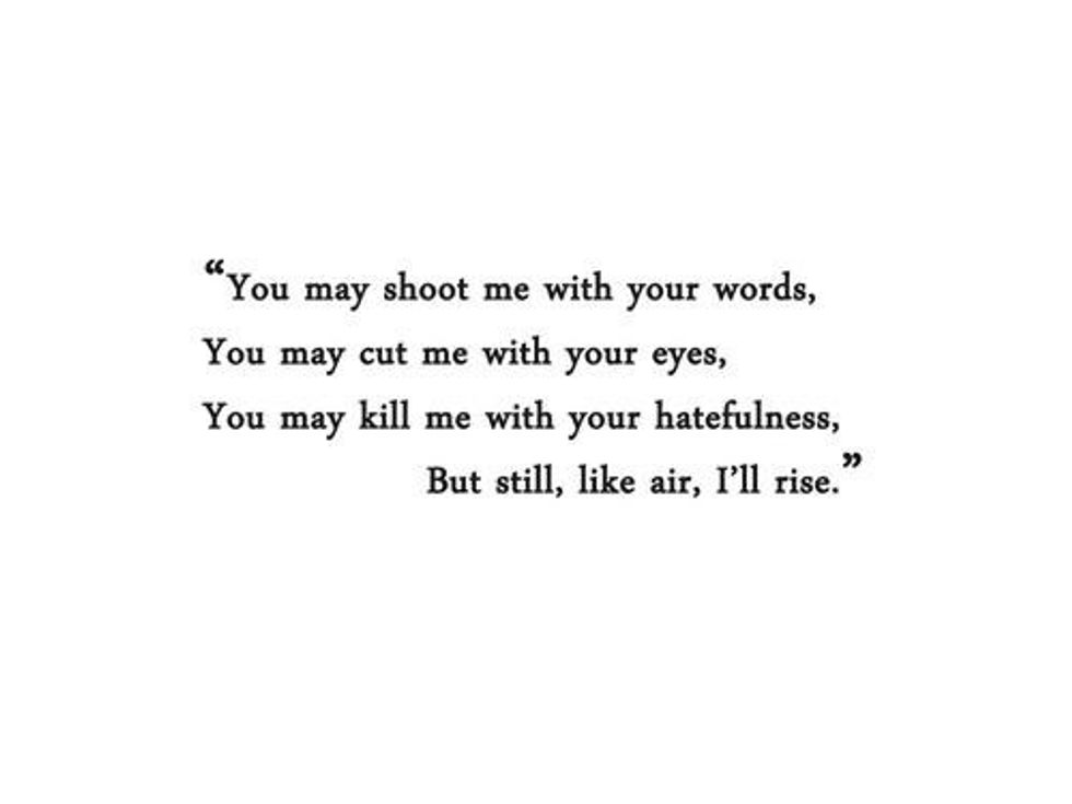 This is also just a small clip of the poem. "Still I Rise" is an empowering poem that teaches us to always get back up.