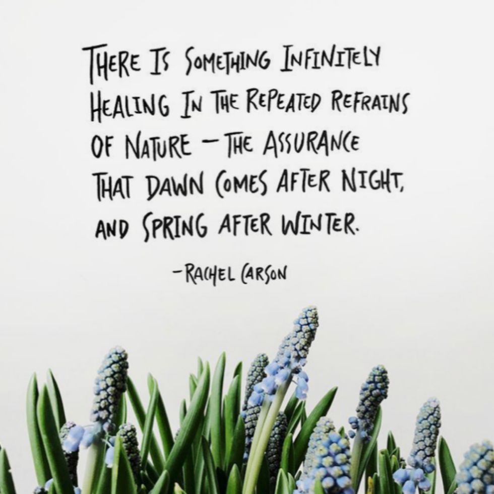 "There is something infinitely healing in the repeated refrains of nature-- the assurance that dawn comes after night, and spring after winter." -Rachel Carson