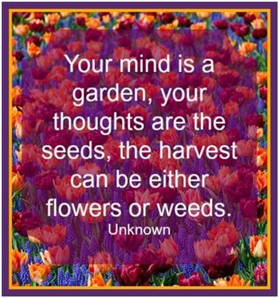 "Your mind is a garden, your thoughts are the seeds, the harvest can be either flowers or weeds." -Unknown