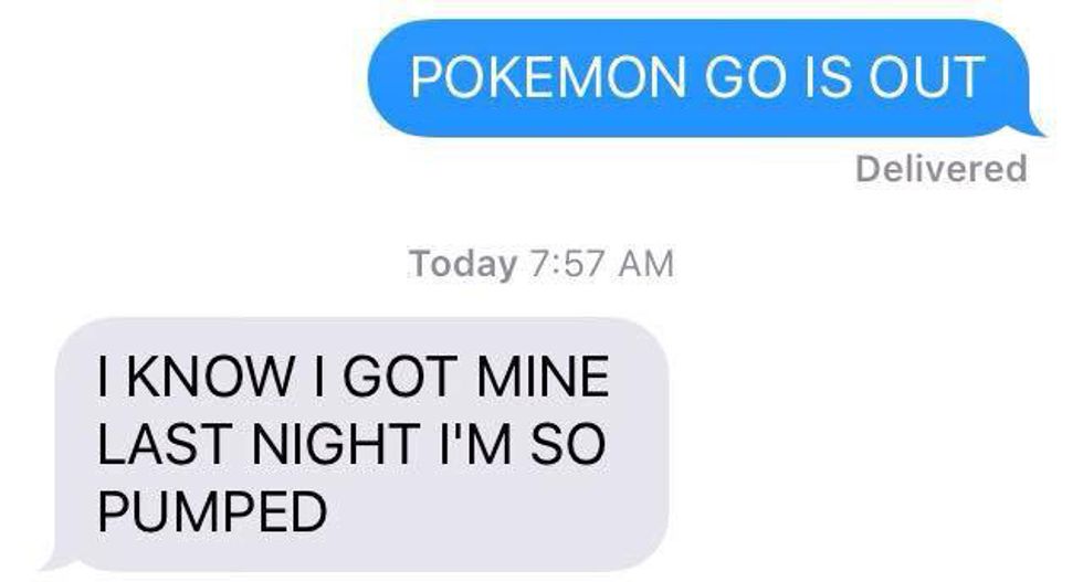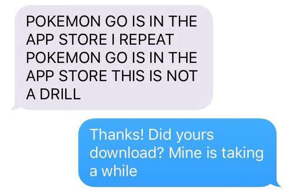 See that pidgey in the tree? Or that lapras in the lake? Yes it is finally here. The long awaited Pokemon GO is available. iOS and Android users alike can now go out and find their favorite pokemon in the wild. My friends and I, like many other trainers out there, were too excited for our own good from the moment we heard about the game to the instant it was available. See for yourself: