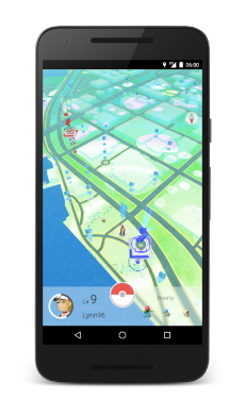 Pokemon Go is a free-to-play augmented reality experience. Using Google’s mapping technology, Niantic provides the player a massive world to interact with through PokeStops- blue, rotating blocks which yield items once selected. Players can attach Lures to these locations, shown by flower petals, attracting in-game Pokemon and real world players. Throughout are Pokemon Gyms, locations players can battle and train with or against other users.
