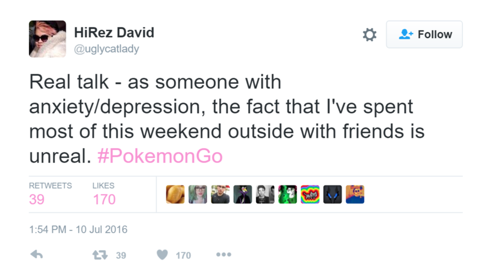 In fact, as a college student myself, I've seen and talked to people this past week that I've never even met just because they were also playing Pokémon GO. We bonded over catching the same Pokémon and compared our collections. I'm usually a naturally introverted person, but I can attest to the fact that the game has helped me to interact with others in a way that I normally wouldn't have.