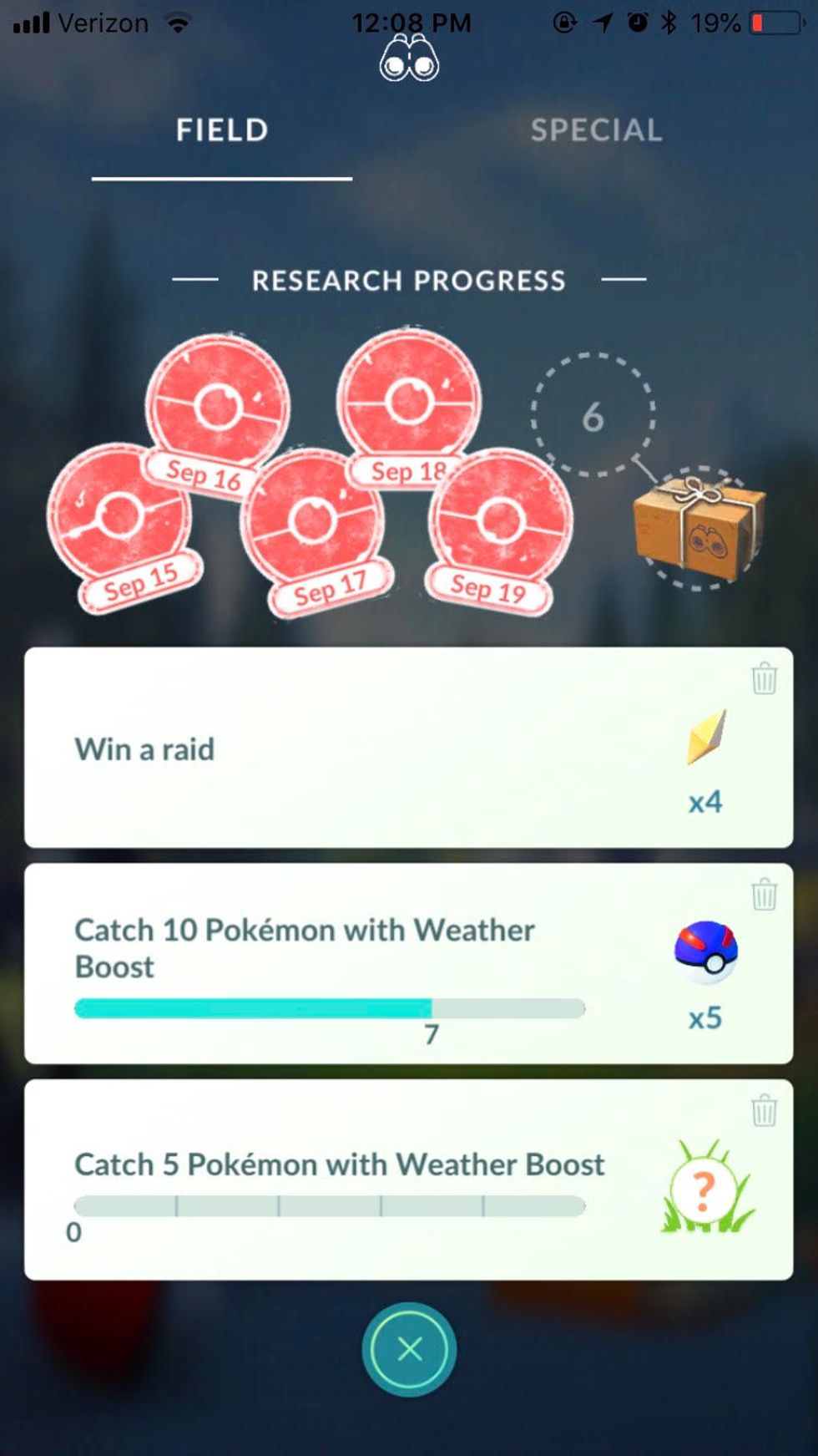 Throughout the game, you will be assigned tasks to complete that will reward you with certain items. For some tasks, a wild Pokémon will appear. You can get new tasks to complete by spinning Pokéstops. If you complete a task for seven days, you will have the chance to catch a rare Pokémon. The special research tasks are only given every once in a while, but if completed, a legendary Pokémon will be awarded!