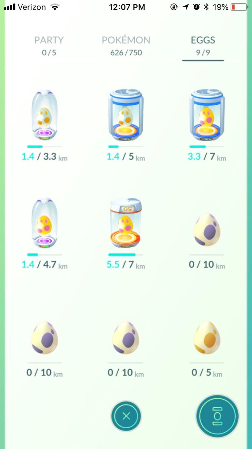 As mentioned previously, you can receive eggs from spinning Pokéstops if you have an open space (you can only hold nine eggs at a time) or from gifts that you receive from other players! The colors all have different meanings. The green speckled eggs are 2 km eggs. The orange speckled eggs are 5 km eggs. The purple speckled eggs are 10 km eggs. You must purchase incubators from the Pokéstore to be able to walk and hatch the eggs. There are two different types of incubators: super and normal. The super incubators will hatch the eggs faster.